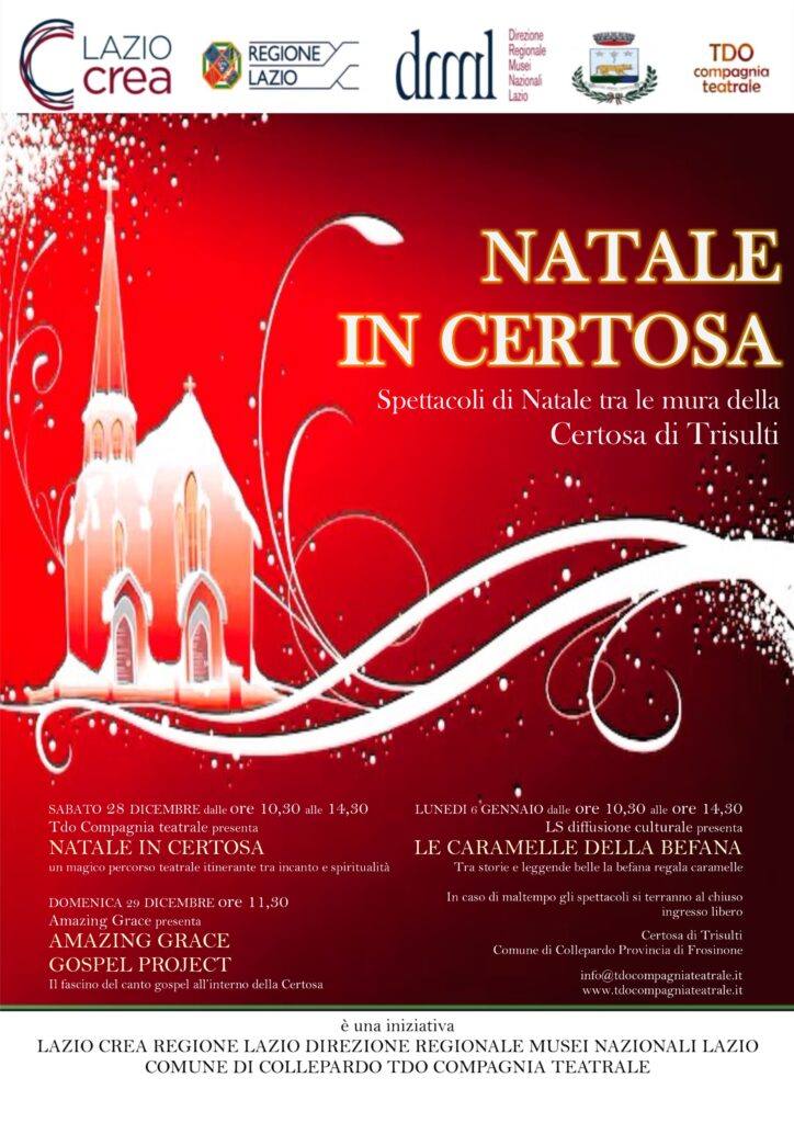 • 28 Dicembre 2024 (10:30 – 14:30): “Natale in Certosa” – Un percorso teatrale immersivo tra tradizione e magia.